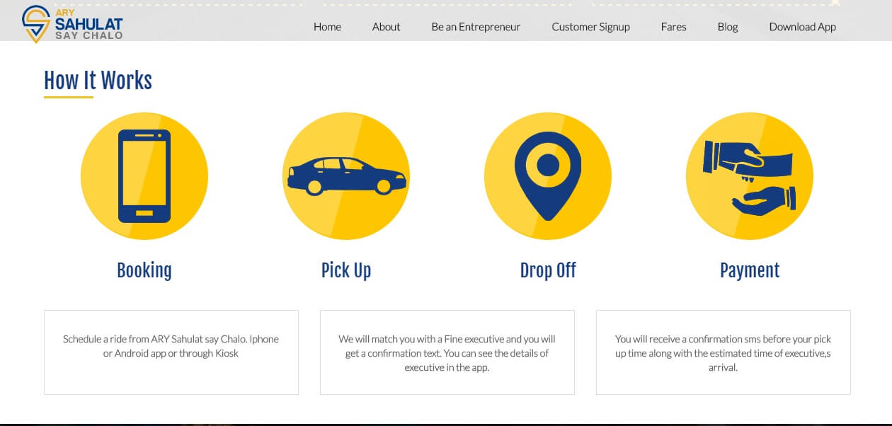 ARY Sahulat Say Chalo is the first “Made in Pakistan” Car and Auto Rickshaw hire app Launched on 21st April 2017, under “Be an Entrepreneur” program launched by ARY Network.