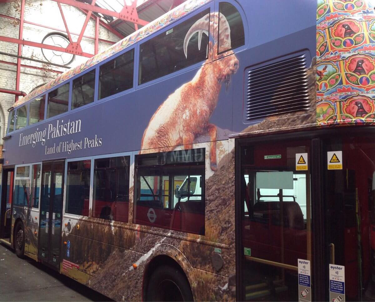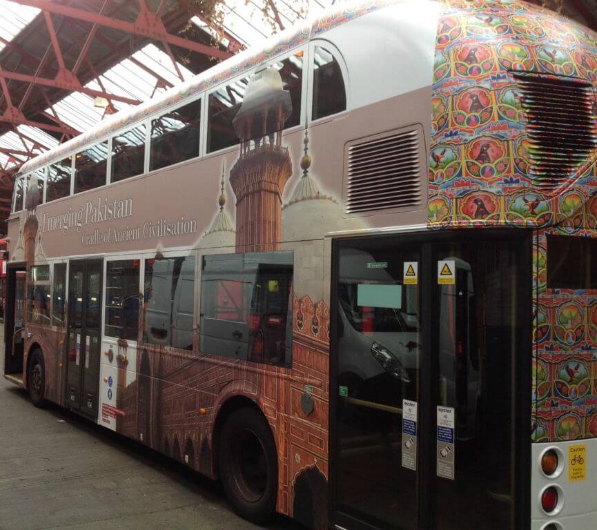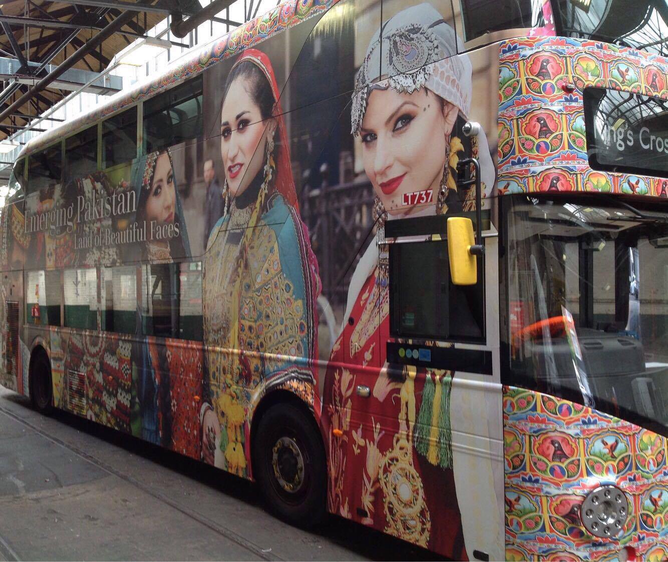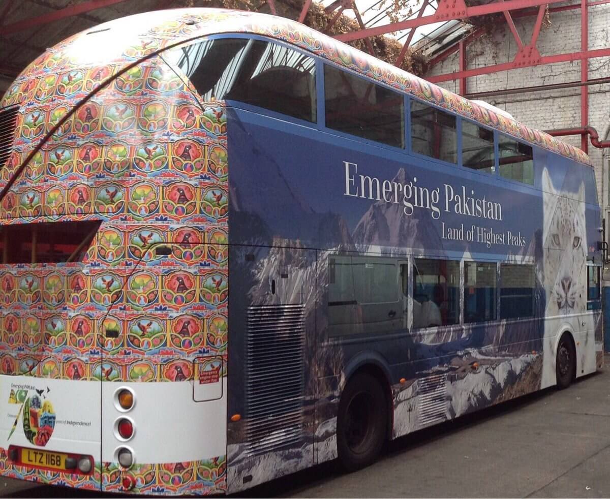 London’s iconic red double-decker buses are carrying brand Pakistan on the roads of Central London, the hub of world tourists. This ultimate branding campaign is running under the theme of “Emerging Pakistan” and will continue for four weeks.